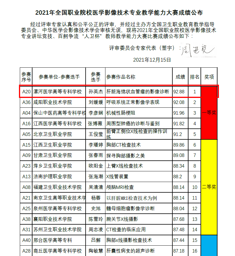 - 荣誉|大奖!一等奖第一名!漯河医专二附院青年骨干在全国医学影像教学能力大赛中斩获桂冠 2021-12-17 20:01:01