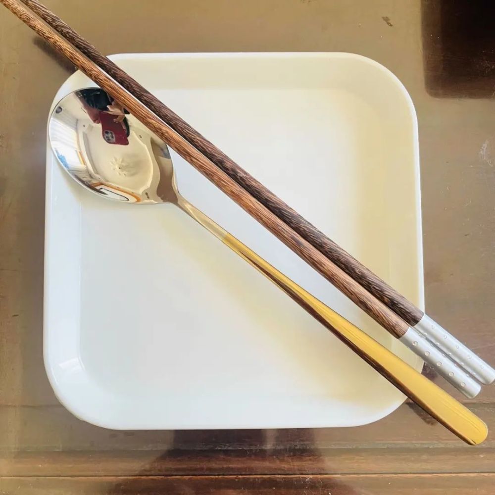 京东上买了筷子勺子盘子,不再使用一次性餐具。环保的同时,饭也更香了~