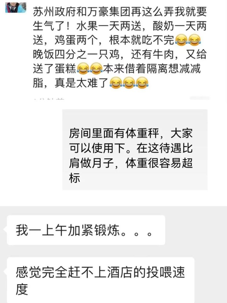 如果说有什么要吐槽的,那就是:隔离期间的餐食实在太丰盛、太营养,大部分隔友都产生了肥胖焦虑(隔离结束重了五六斤的不在少数)。