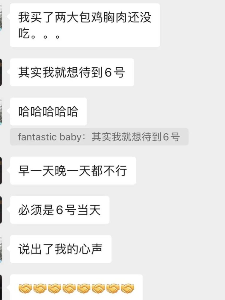 有人买了体重秤,刚刚送到;有人的同事朋友寄来安慰物资,还在路上;有人和我一样买了好几本书,一本还没看完。