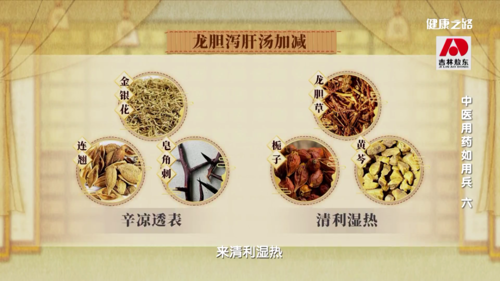 龙胆泻肝汤由龙胆草、栀子、柴胡、黄芩、泽泻、木通、车前子等药材组成。其中的金银花、皂角刺、连翘可以辛凉透表,外发内脏热毒,发挥“纵”的作用;龙胆草、栀子、黄芩可以清利湿热,发挥“擒”的作用。一“擒”一“纵”,对治疗带状疱疹具有很好的疗效。