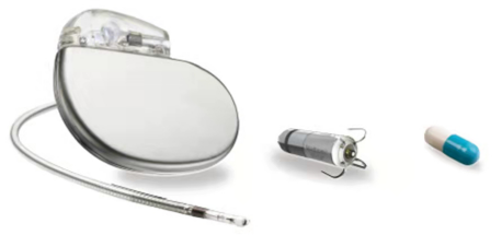 ▲传统起搏器与无导线起搏器Micra对比。