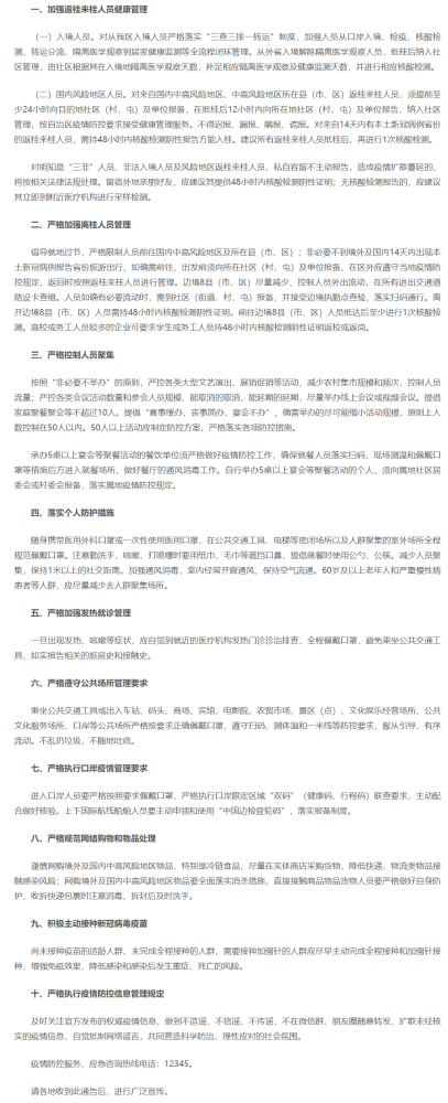 总台记者18日从广西壮族自治区卫生健康委员会获悉,广西壮族自治区新型冠状病毒感染的肺炎疫情防控工作领导小组指挥部发布关于2022年元旦和春节期间新冠疫情防控健康管理的通告,具体内容如下: