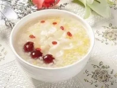 制作:洗净食材,备用。往锅内注入清水大火煮沸,放入小米、银耳和花生,期间要注意搅拌以防糊底,等到材料加入完全煮沸后改为中火。在小米开始出花的时候将红枣、百合和冰糖放入小米粥中,将火力改为大火煮沸后即可出锅。