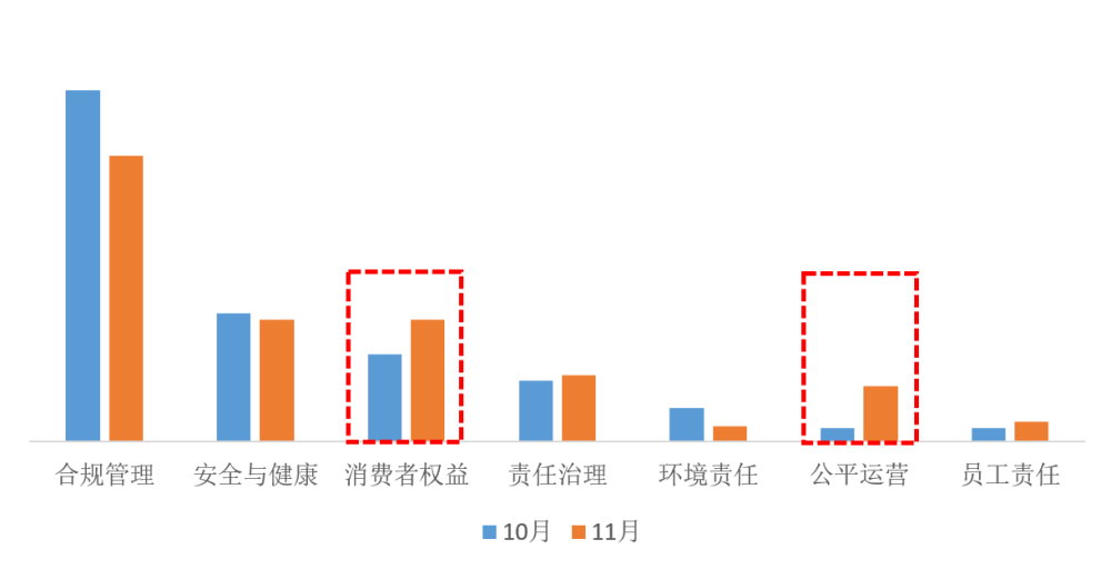 图:10月和11月社会责任警示事件领域分布对比