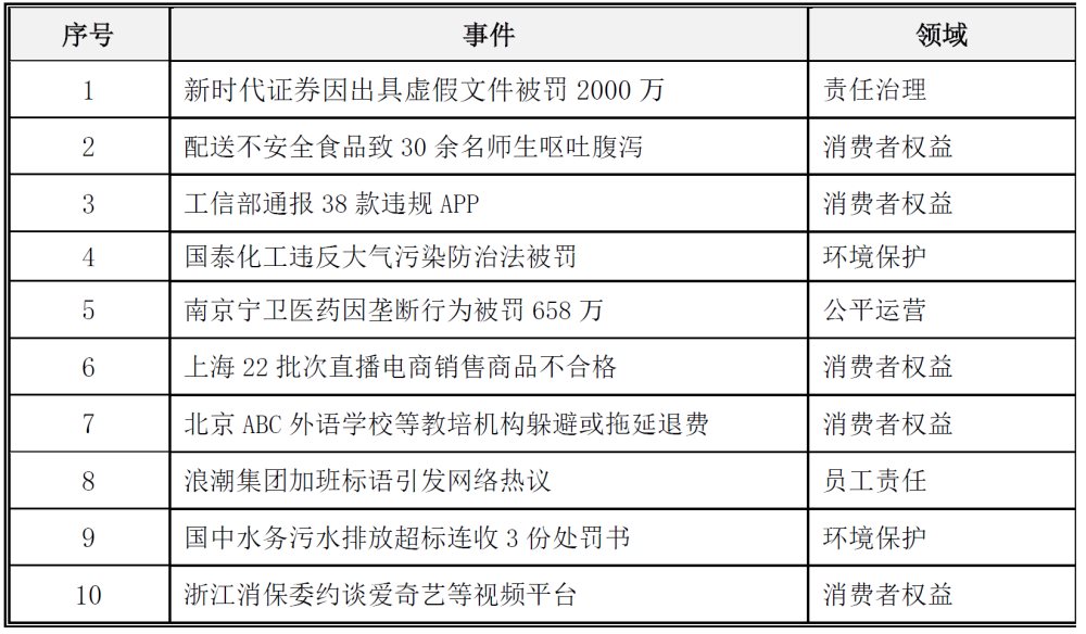 11月十大企业社会责任警示事件