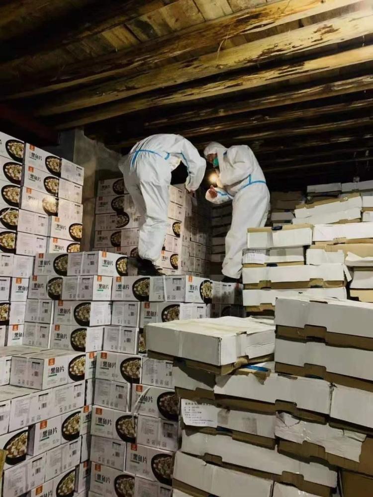 执法人员进行进口冷链食品执法检查(图片由市场监管总局提供)