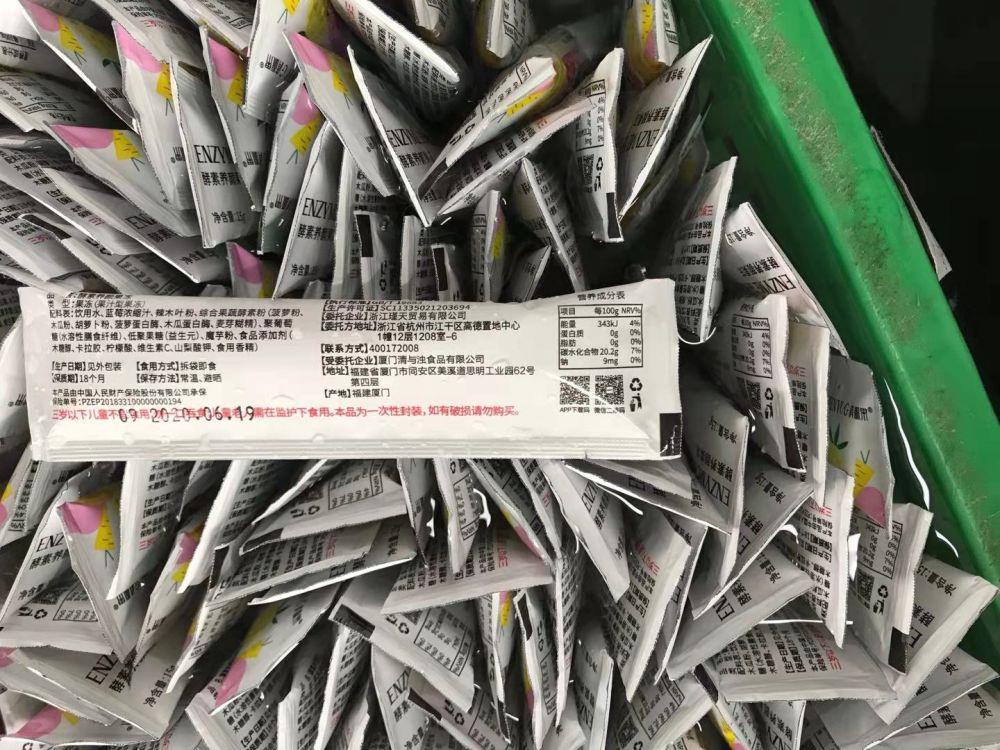 2020年10月21日,福建省厦门市同安区市场监管局根据举报线索,对厦门兜好麦食品有限公司进行现场检查,发现该公司员工正在生产虚假标注生产日期、厂名、厂址的果冻。经检测,在该公司生产的“清源果酵素养颜果冻”“每日既白复合酵素果冻”“颜如雅酵素果冻”3款果冻产品以及使用的原料中,均检出高浓度的番泻苷A、番泻苷B,涉嫌药品成分,容易使人产生药物依赖。所幸此次查获的10多万条问题果冻尚未出厂销售,执法人员没收相关产品及配料,并处罚款53.6万元。