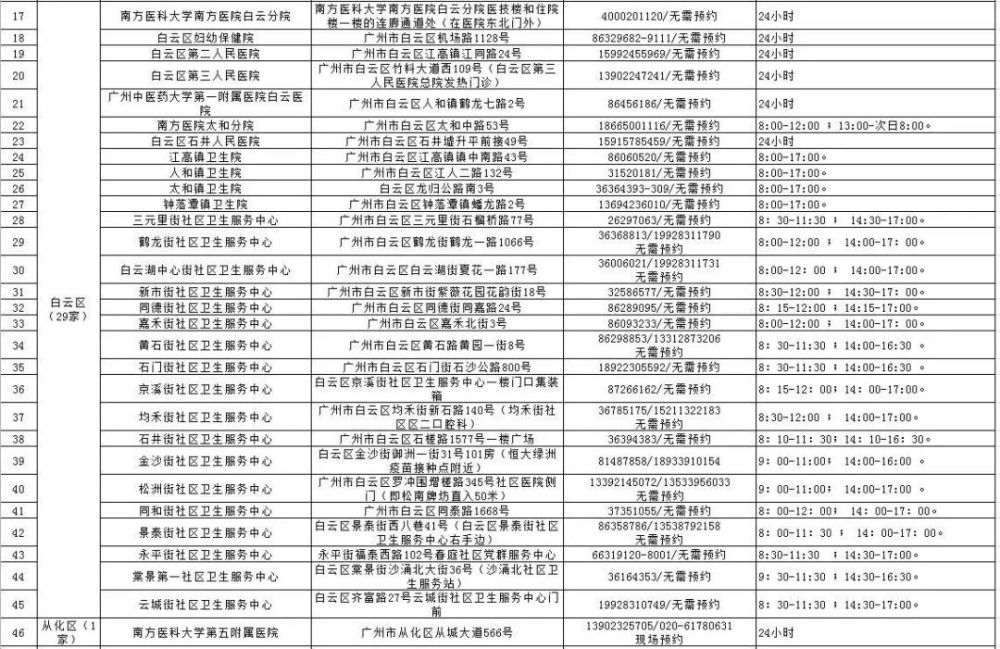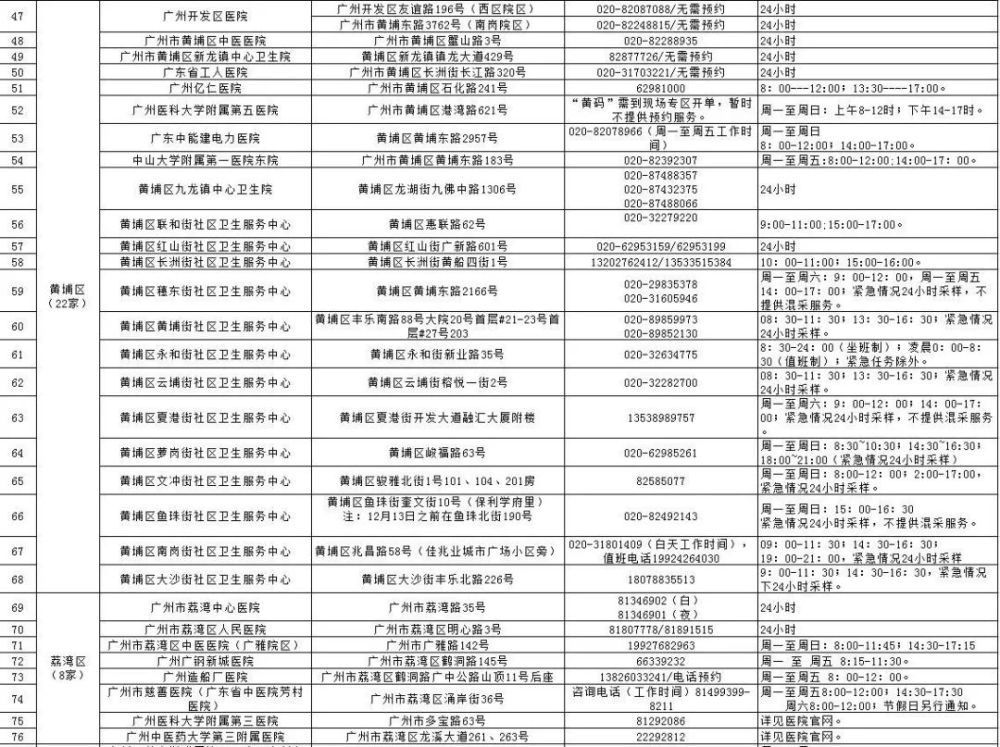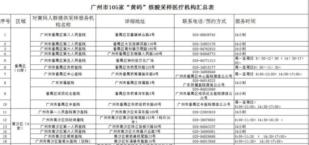 【附:广州市105家“黄码”核酸采样医疗机构汇总表】