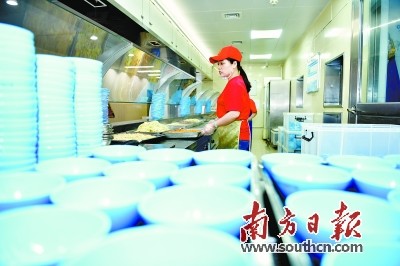 我省将有计划地推进社会餐饮“互联网+明厨亮灶”建设。图为已实现“明厨亮灶”的东莞一餐饮示范街区。孙俊杰 李鄂 摄