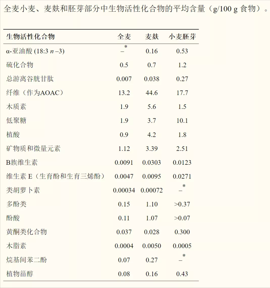 主要成分是膳食纤维、维生素 B、铁、铜、锌、镁、抗氧化剂和其他植物化学物质。相关阅读全谷物很健康?对于有些人来说,可能是个坑...