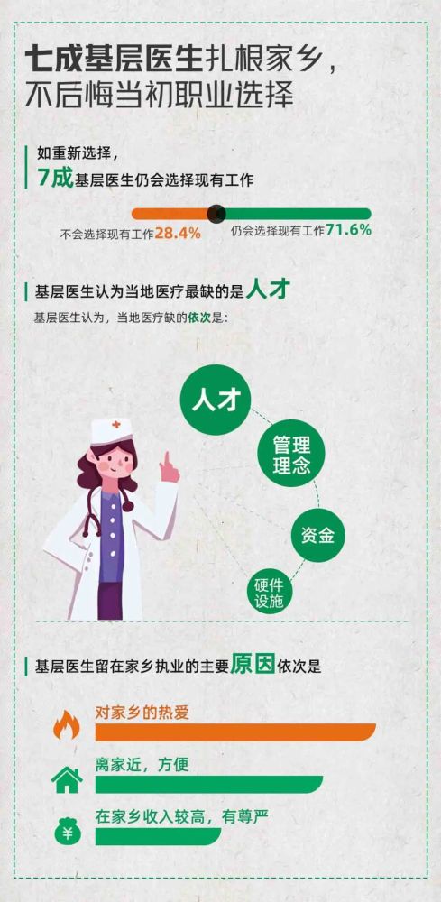 70%选择留下,就有30%选择离开,基层医生的专业程度和社会地位确实和大三甲无法比。哪怕是刚毕业的新人,也有人选择在大城市、大医院从一个助理医师起步,拒绝在基层有一个快速的发展。
