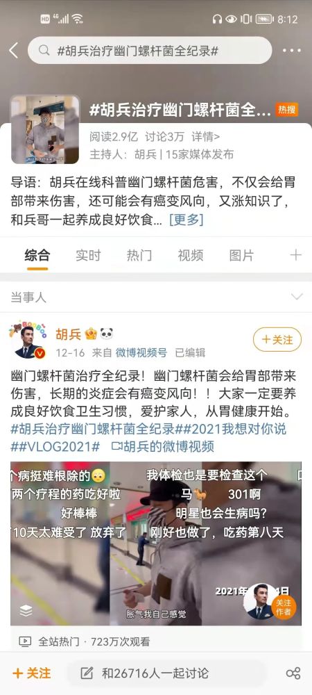 近日,男星胡兵一条关于治疗幽门螺杆菌的vlog记录冲上了微博热搜,他记录了自己治疗的全过程,并告诫所有网友,幽门螺杆菌会给胃部带来伤害,长期的炎症会有癌变风险。