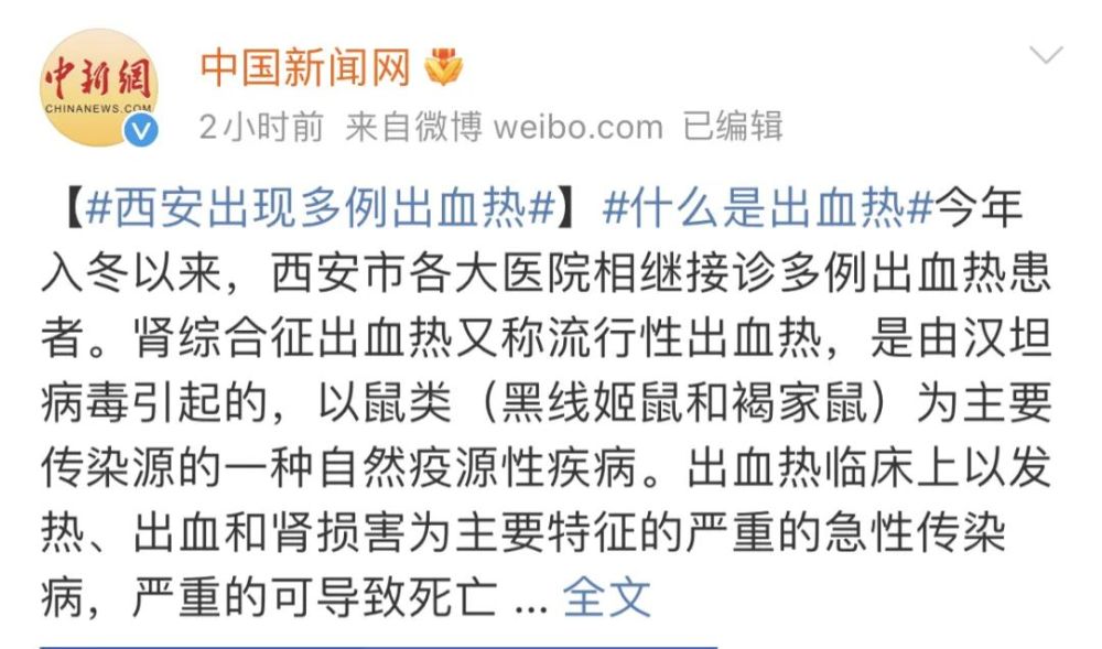 - 注意!西安出现多例出血热,专家提醒:出现发烧头疼需提高警惕2021-12-19 14:00:46