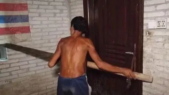 但男户主带他来到一个房门被一根两米长粗木棍死死卡住的房间。
