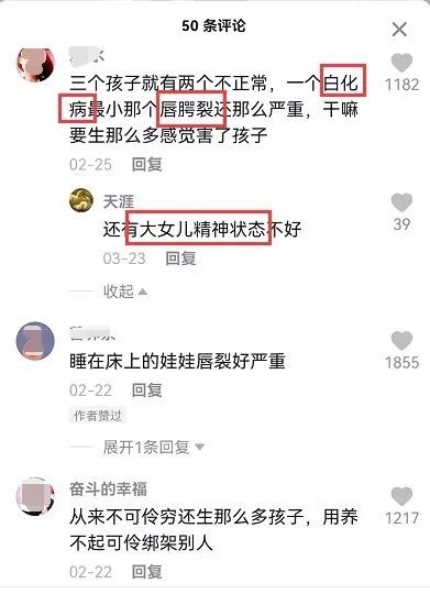 丈夫前妻留下来的大女儿精神失常,自己生的老二是白化病,老三两眼间距宽、鼻根低平,可能会是唐氏综合征,老六是先天性唇腭裂。