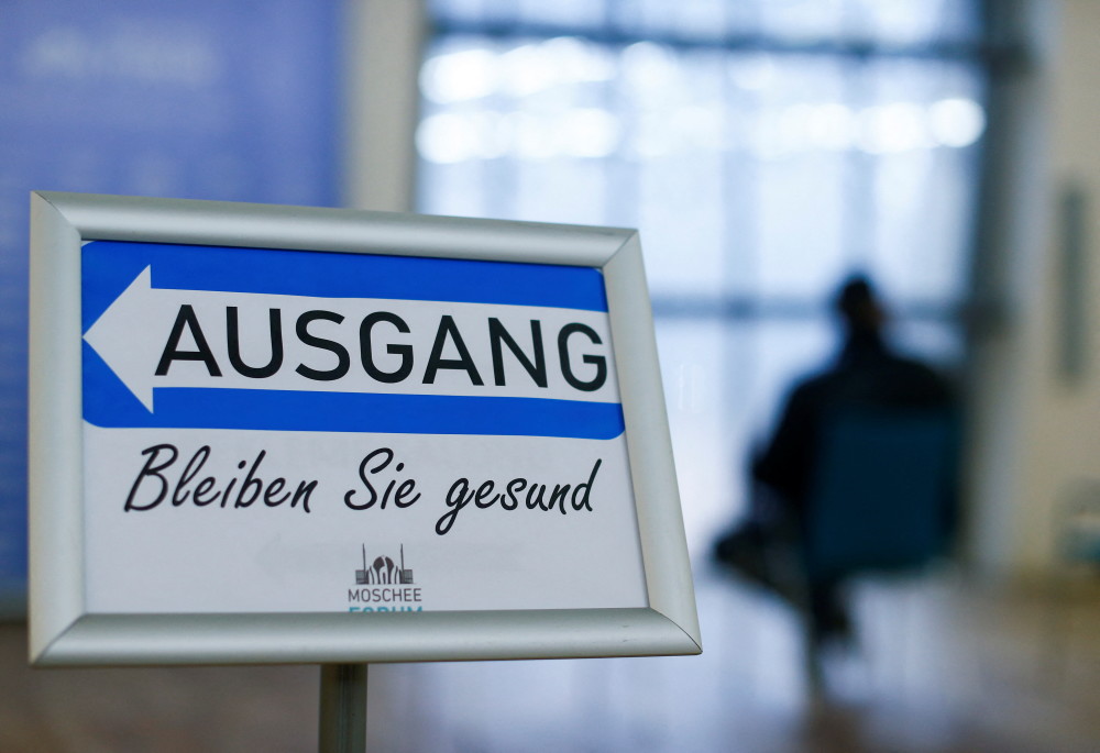 12月18日,德国科隆一处新冠疫苗接种点出口处放置着“祝您健康”的标牌。新华社/路透