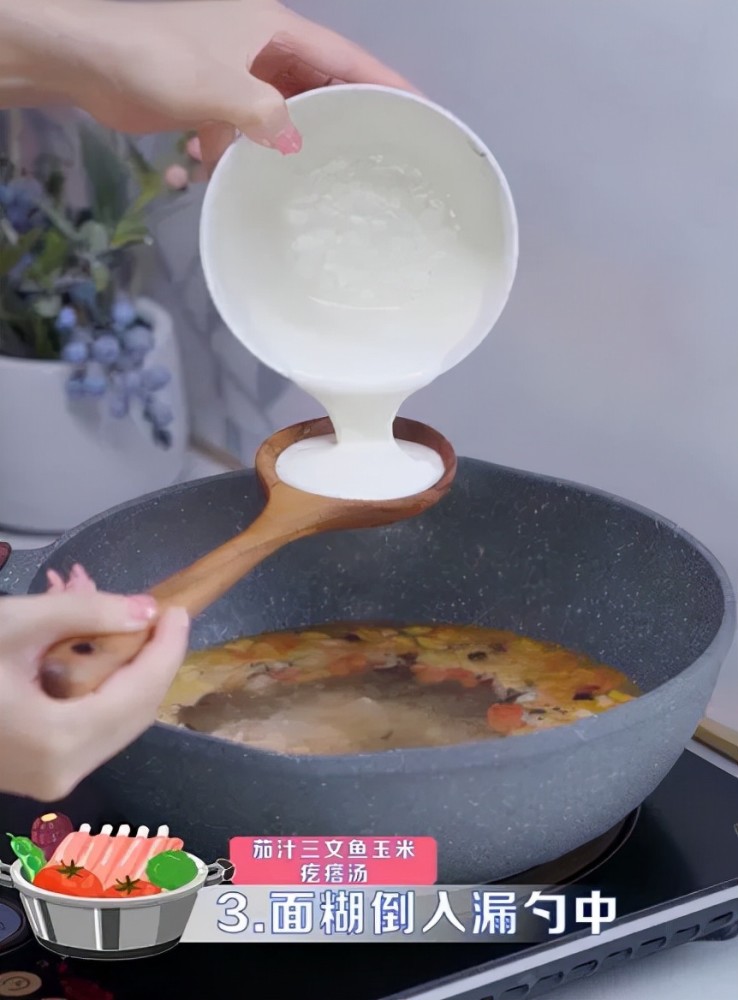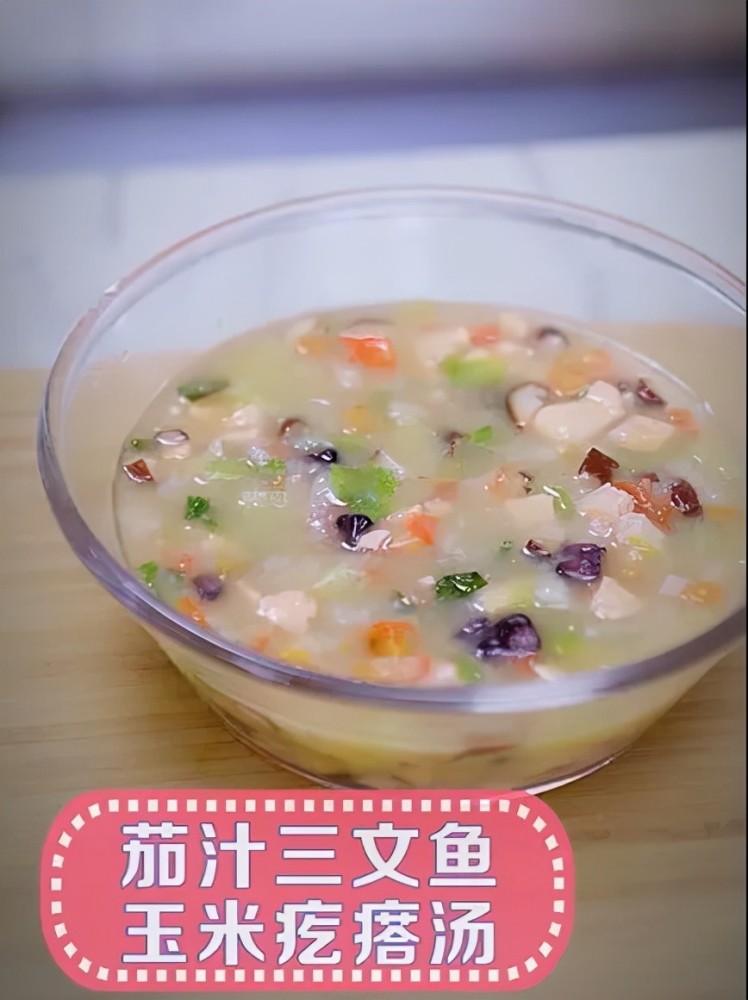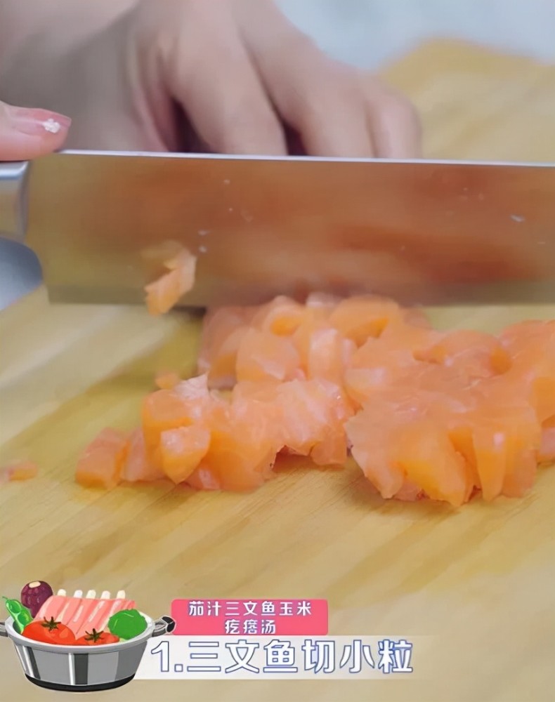 今天教给大家一道老少皆宜的防癌美食――茄汁三文鱼玉米疙瘩汤。