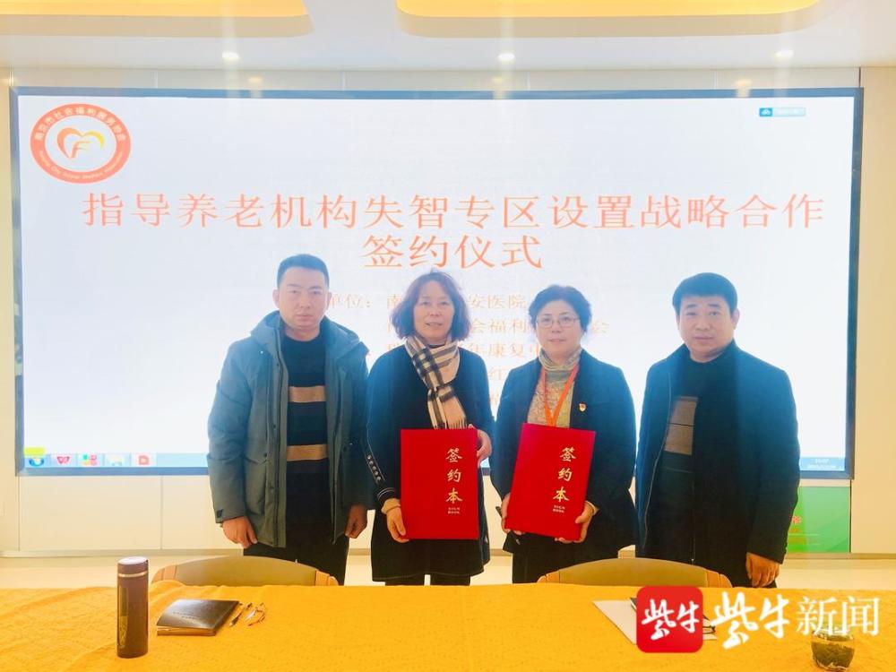 双方在该养老机构失智专区签署合作签约。今后,这样的专区将在双方共同合作指导下,继续在南京市建邺区社会福利院、雨花台区瑞海博老年康复中心、鼓楼区易发红日养老院等推广,作为“统领”全市养老机构的市社会福利服务协会首批合作试点单位。