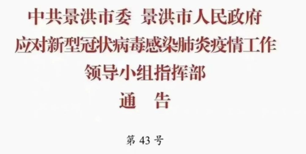自2021年12月27日0:00时起,对出入景洪市城区的通道实施交通管控,城区内人员非必要不外出。