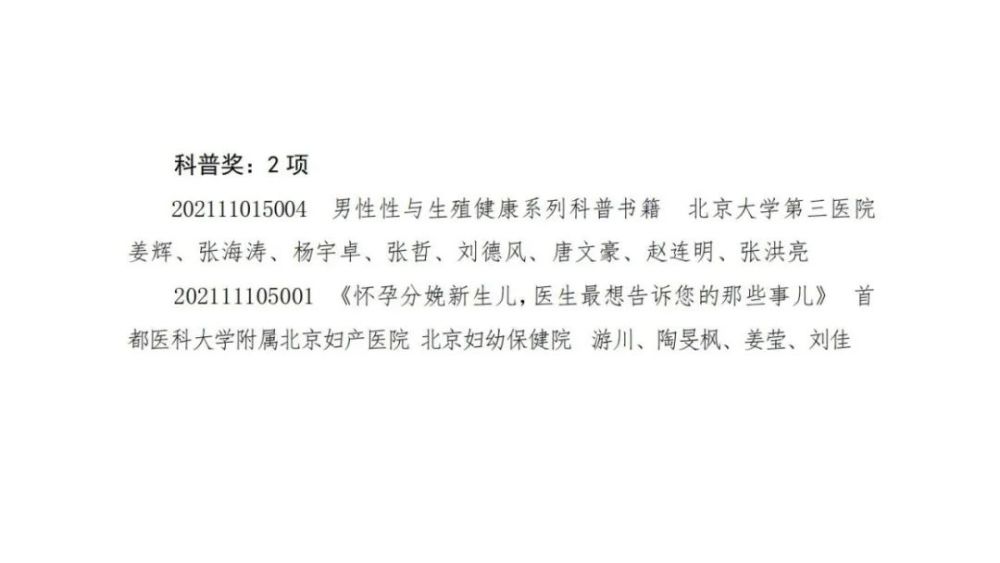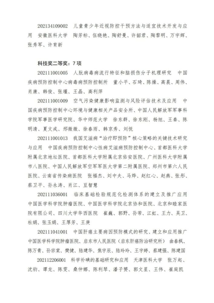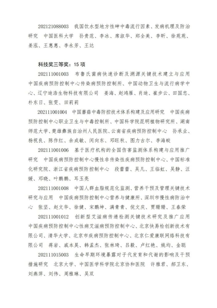 中华预防医学会关于2021年中华预防医学会科学技术奖获奖项目奖励的决定
