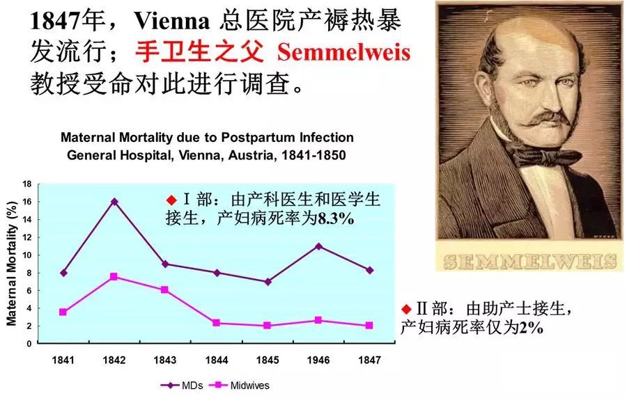 在此举实施的很短时间内,一病区的产妇产褥热死亡率从近20%急剧下降到1%左右