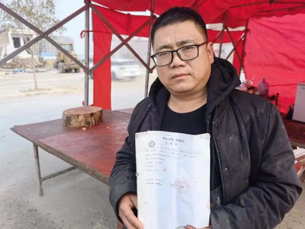 ▲患者张喜军曾因未使用血管吻合器投诉郑大一附院,签署“手术不理想协议”后获得2万元赔偿。新京报记者 程亚龙 摄