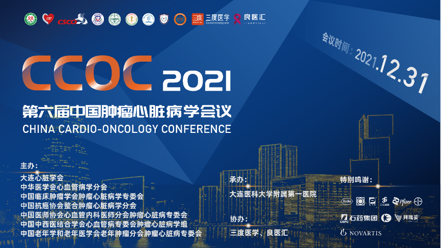 大连心脏学会中华医学会心血管病学分会(CSC)中国临床肿瘤学会(CSCO)肿瘤心脏病学专家委员会中国抗癌协会(CACA)整合肿瘤心脏病学分会中国医师协会心血管内科医师分会肿瘤心脏病专业委员会中国中西医结合学会心血管病专业委员会肿瘤心脏病学组中国老年学和老年医学会老年肿瘤分会肿瘤心脏病专业委员会主办,大连医科大学附属第一医院承办,三度医学与良医汇协办的2021年第六届中国肿瘤心脏病学会议(CCOC)于2021年12月31日上午线上召开。