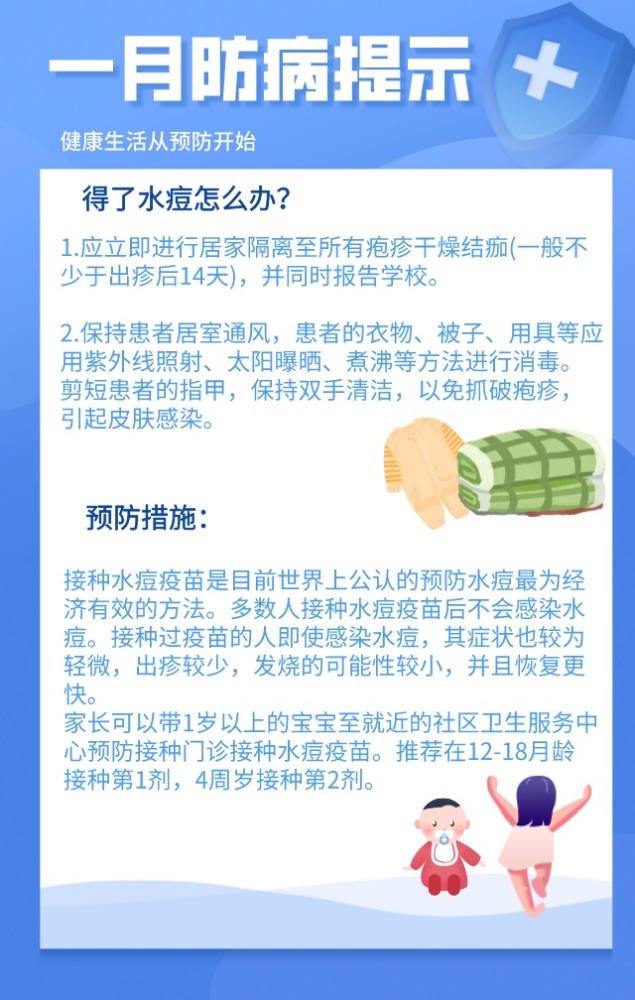 水痘是一种由水痘-带状疱疹病毒引起的急性呼吸道传染病,多见于儿童,容易在集体机构引起暴发。病毒可通过水痘患者咳嗽或打喷嚏在空气中传播,也可通过接触水痘患者的水疱传染。