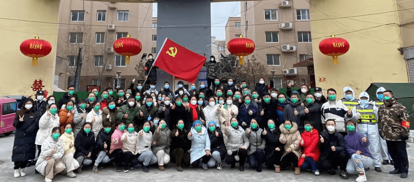 某某小区的住宅楼高达18层,由于疫情,电梯暂时不能使用。董晓敏就组织大家一个台阶一个台阶地爬到18楼,然后一层楼一层地往下走,逐户逐人进行咽拭子单人采集。当大家完成任务顺利返回驻地时,专家与领导们泪奔了,他们主动邀请与突击队员合影留念。