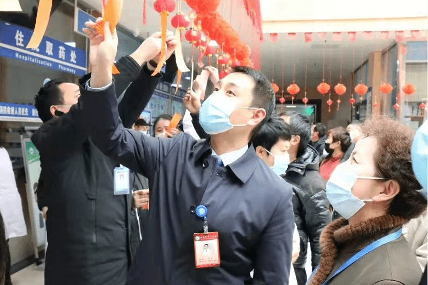 永城市中心医院医疗健康集团党委书记祝亮及院领导班子、院务委员和部分医护人员齐聚康馨大厅。