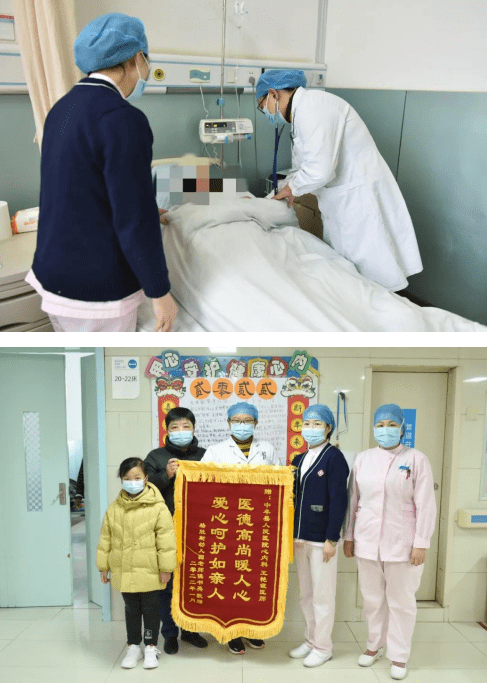 经过几天的控制血压与消炎治疗,侯女士顺利康复出院。为表示对两名医务人员的感谢,特意送来了锦旗。