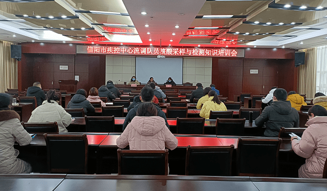 本报讯(记者王明杰 通讯员王艳超 胡昊)日前,信阳市疾控中心为贯彻落实省委疫情防控工作第十次和第十一次专题会议精神,该中心在十楼会议室召开流调队员核酸采样与检测知识培训会。信阳市疾控中心副主任张丽、传染病预防控制科科长胡艳、中心检验室主管技师程俊俊及流调队成员共约42人参加培训。